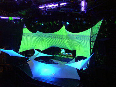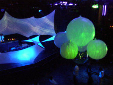 デコに映る光と色がステキです アーティスト、DJ・・・ 自分の好きな音に出会えたならば 次はデコレーションやVJを見てください 天井の高いベイサイド・ジェニー 見上げれば不思議なものが見えるかも・・ (笑) |