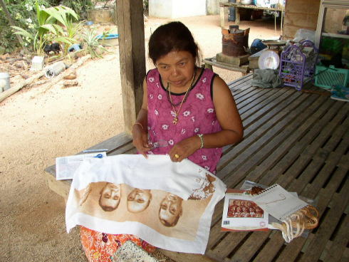 | 途中ジュースとガソリン補給 | 店のおばちゃん 絵みたいな裁縫です |
