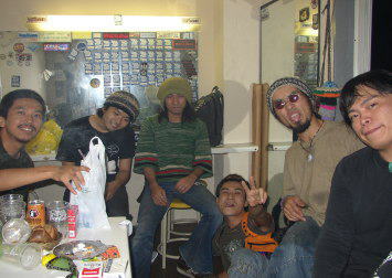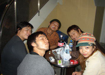 | ビルの入り口で宴会? | 楽屋でも宴会・・(笑) |